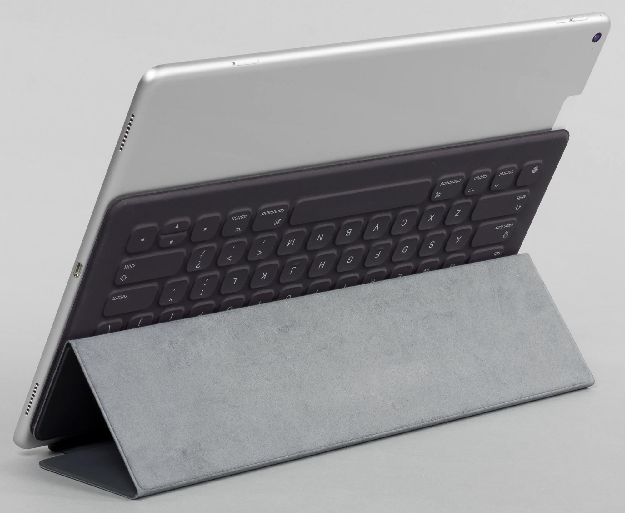 Раскладка — максимально приближена к привычной раскладке клавиатур MacBook или iMac / Mac Pro / Mac mini (Apple Keyboard). Ниже — фотографии Apple Keyboard и клавиатурного блока Smart Keyboard (не обращайте внимания на пропорции — Smart folio Keyboard на самом деле чуть-чуть длиннее, чем Keyboard, поэтому клавиши не настолько сильно меньше).