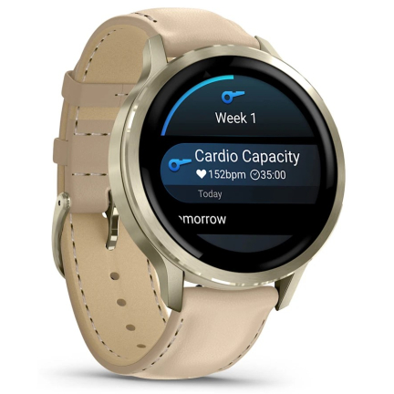Garmin Venu 4 - 41 mm Lunar Gold with Bone Silicone Band and Light Sand Leather Band (010-03013-03)